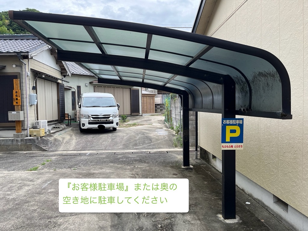 当宿に専用駐車場スペース(最大6台)があります。(屋根付き1台、平置き5台)